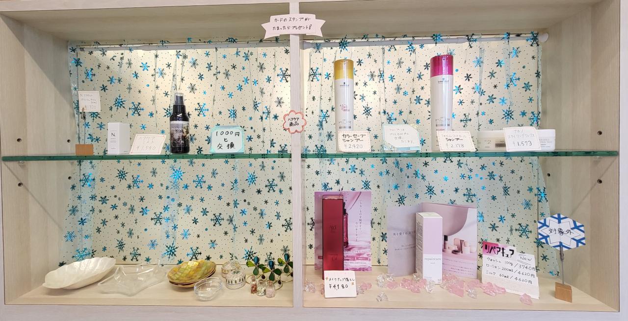 クリスマスが終わったので、店内のディスプレイを冬のカーテンにしてみました。