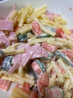 ボウルいっぱいのマカロニサラダが出来ました(笑)
