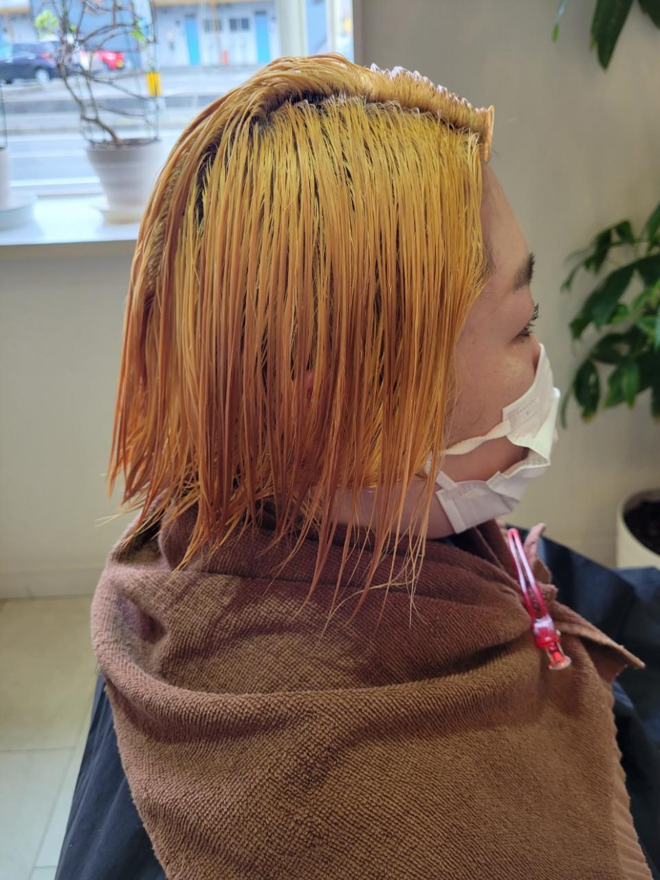 二回目のブリーチをして、その上からカラーを入れました。(今回はグレーにしました。)