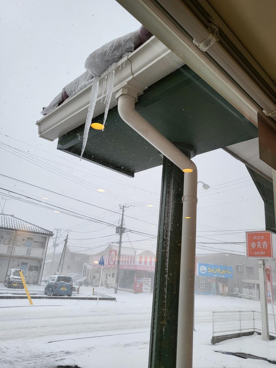 朝からツルツルの道路で怖いですよね。店ではツララもできていました。