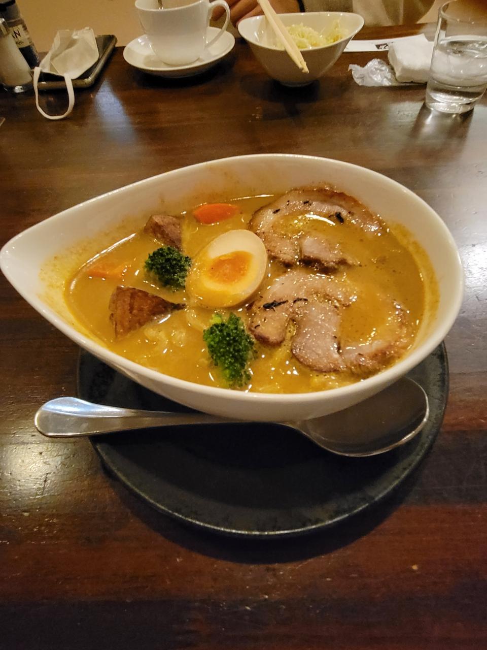 先日友達と食事に行って某お店のカリーラーメンを食べました