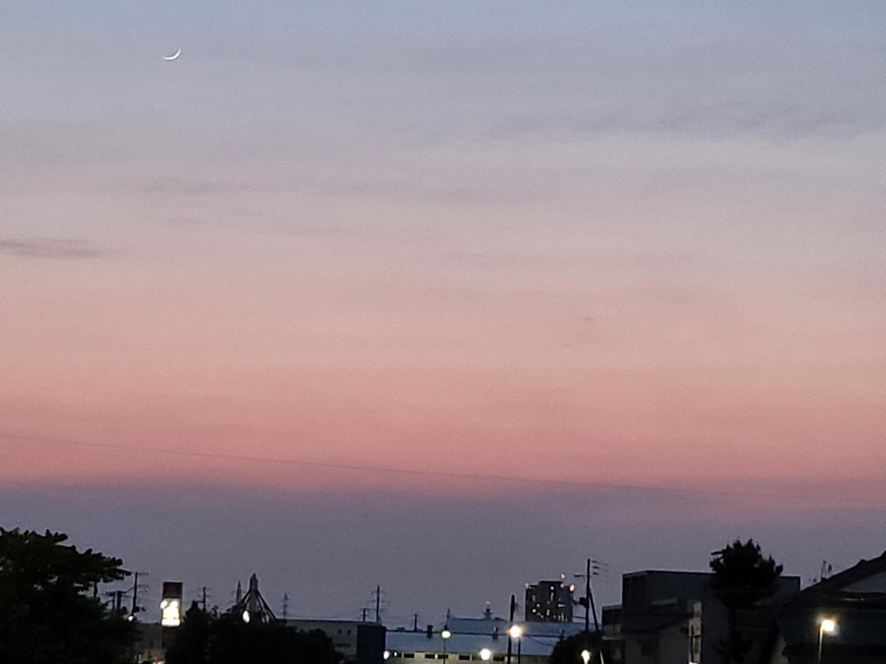 久しぶりに、夕焼けと三日月がきれいな写真が撮れました!