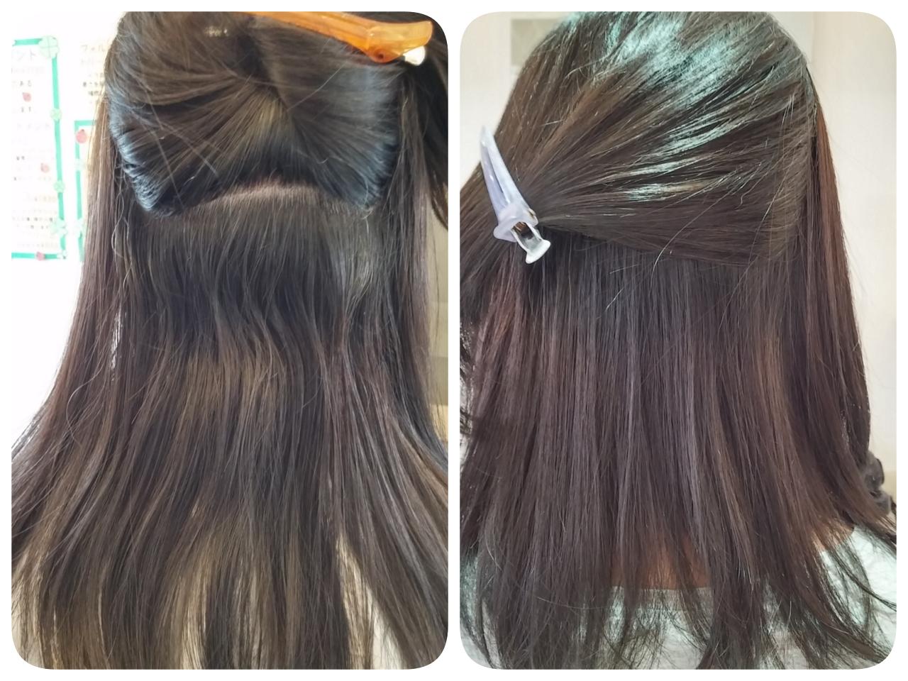 かけたところが地毛の左よりキレイになりすぎて変なアシメになるから。