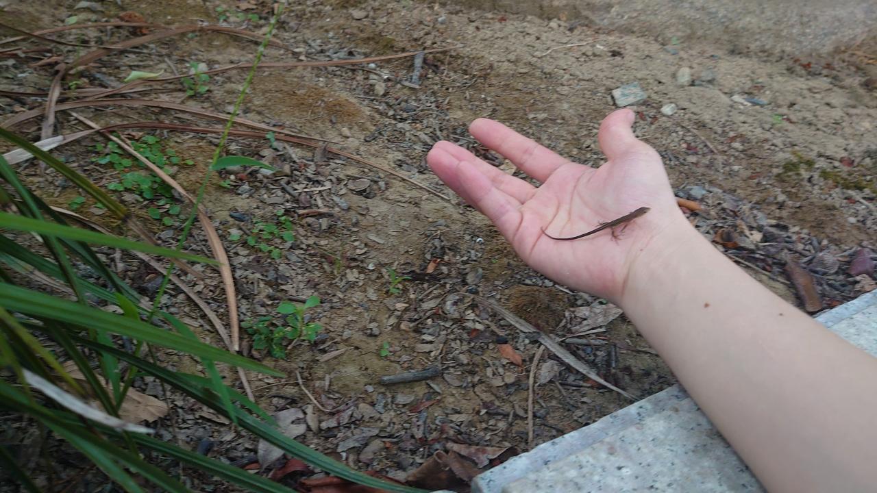 そして車の下に、カナヘビの赤ちゃん…。